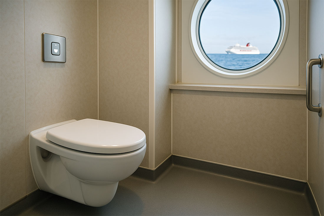 Diferente dos banheiros em terra firme, os sistemas sanitários de cruzeiros operam com vácuo pressurizado — semelhantes aos usados em aviões, mas em escala muito maior e mais complexa.