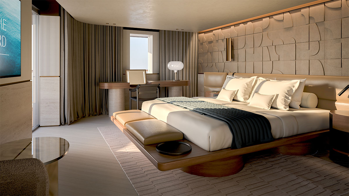 Os projetos levam a assinatura da arquiteta e designer Patricia Urquiola e inauguram uma nova leitura de moradia de alto padrão em cruzeiros, com foco em experiência sensorial, artesanato e integração permanente com a paisagem marítima.